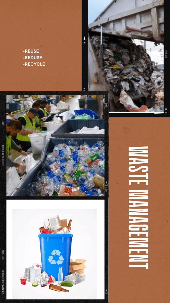 Waste Management reduses the effect of waste on the environment health, and so on. It can also help reuse or recycle ♻️ resources, such as; paper 📜, can, glass, and so on. There is various type of waste management that include the disposal of solid, liquid, gaseous, or hazardous substances.